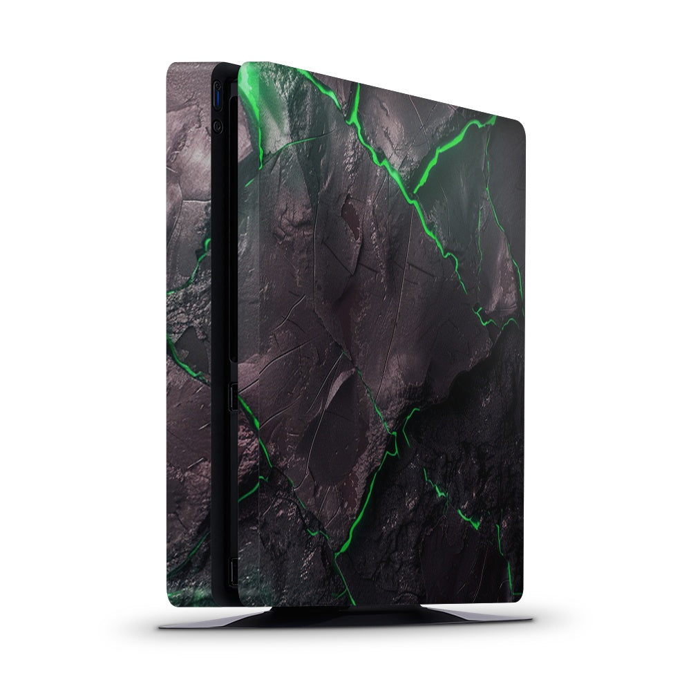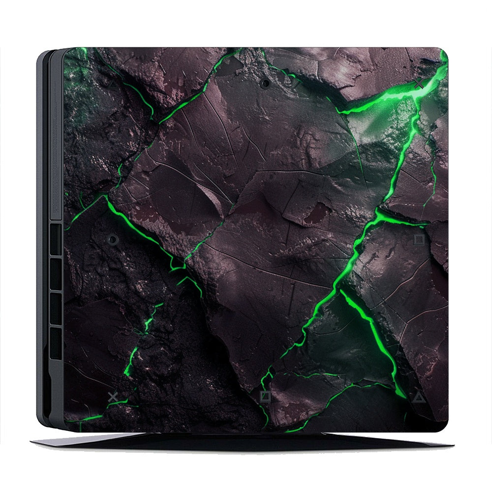 Decal Skin Sticker for PS4 Slim: Carbon Rock Glow Green