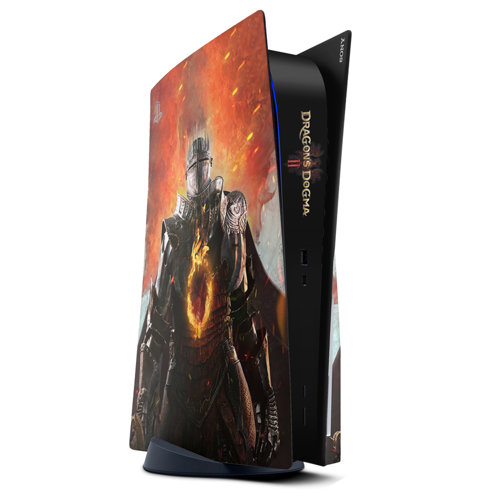 Transform your PlayStation 5 console and controller into a stunning work of art with our exclusive Dragon's Dogma II Skin. Experience easy bubble-free installation that ensures a perfect fit every time, allowing you to showcase your love for gaming without any hassle. The vibrant knight design against the fiery backdrop...