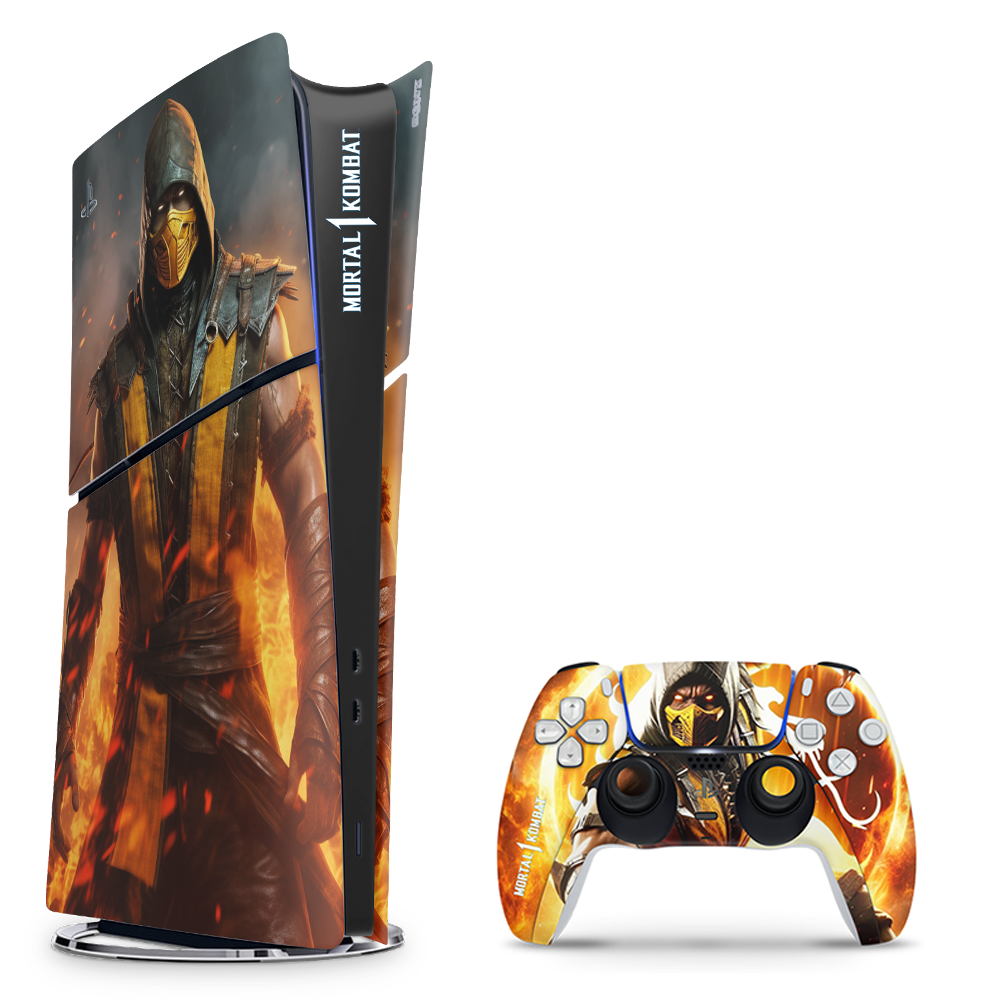 Unleash your inner warrior with the Mortal Kombat-themed PlayStation 5 Slim! This eye-catching skin transforms your console into a stunning piece of artwork, featuring a fiery design that brings your gaming experience to life. With easy bubble-free installation, you can effortlessly apply the skin without any worries, and when it's...