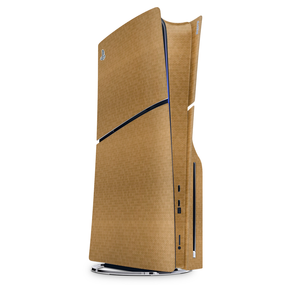 Transform your gaming experience with our exclusive Honeycomb Gold skin for the PlayStation 5 Slim (Disk Version). This eye-catching design not only enhances the sleek lines of your console but also provides a tactile feel with its unique textured finish. Imagine showcasing your console with this distinct style that makes it as much a centerpiece as a gaming machine. Don't settle for a mundane look; elevate your setup and impress your friends with this one-of-a-kind skin. Easy bubble-free installation ensures a smooth application, and when it's time to switch things up, our skin leaves no residue behind. Make the bold choice today!
